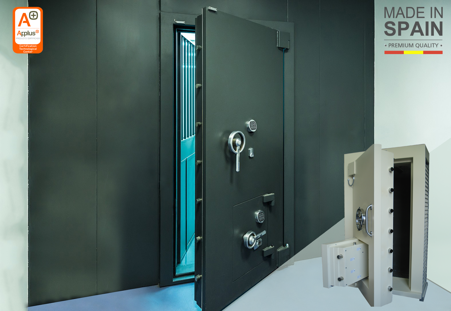 Сейфовая комната FERRIMAX – надежная конструкция высокого класса защиты от взлома. Бронированные панели и двери сертифицированы APPLUS по стандарту EN 1143-1. В сейфовой двери FERRIMAX может быть установлен аварийный шлюз и комбинация двух замков – электронного и ключевого. Для банковских хранилищ и крупных промышленных объектов FERRIMAX предлагает специальные конструкции X класса устойчивости к взлому.